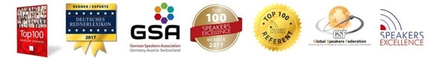 Die "Top 100 Excellent Speakers" gehören zu den hochkarätigsten Speakern und werden durch ihre besondere Kompetenz und rhetorischen Brillanz mit dem "Top 100 Speakers"-Siegel exklusiv ausgezeichnet. Ralf Gasche gehört dem hochkarätigen Experten- und Speakernetzwerk bereits seit 2015 an.